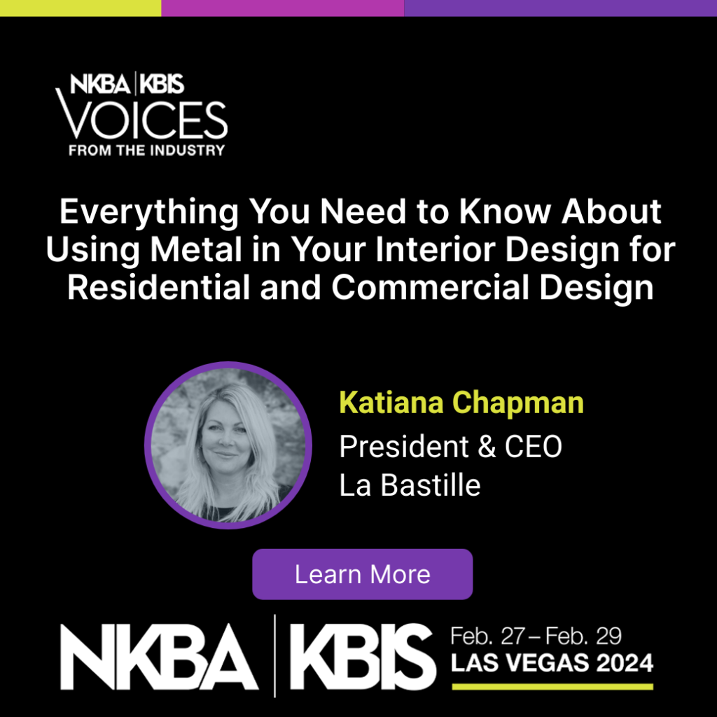 If you are headed to KBIS Las Vegas, February 27-29, I’m going to be speaking at the VFTI Conference. Unlock the art of metal finishes in interior design at La Bastille’s CEU session at KBIS. Explore metal’s transformative power in residential and commercial spaces. Unveiling Zinc, Pewter, Brass, Bronze, and Copper’s unique attributes.
